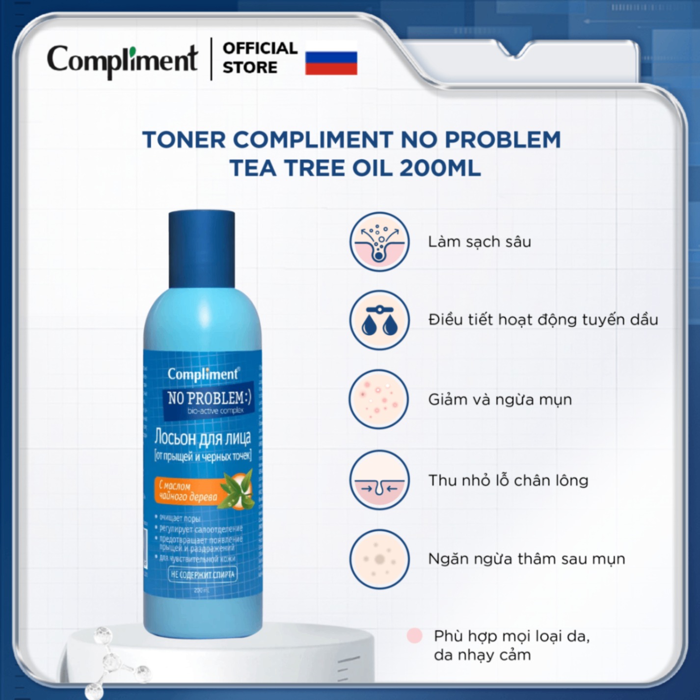 - Toner Compliment No Problem BHA + Tea tree oil 200ml (vạch cam)