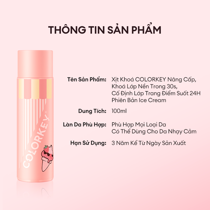 [Phiên Bản ICE CREAM] Xịt Khóa Trang Điểm Colorkey Airy Soft Matte Makeup Setting Spray 100ML – một giải pháp tuyệt vời giúp lớp make-up của bạn duy trì độ tươi mới, mịn màng và hoàn hảo suốt cả ngày dài.