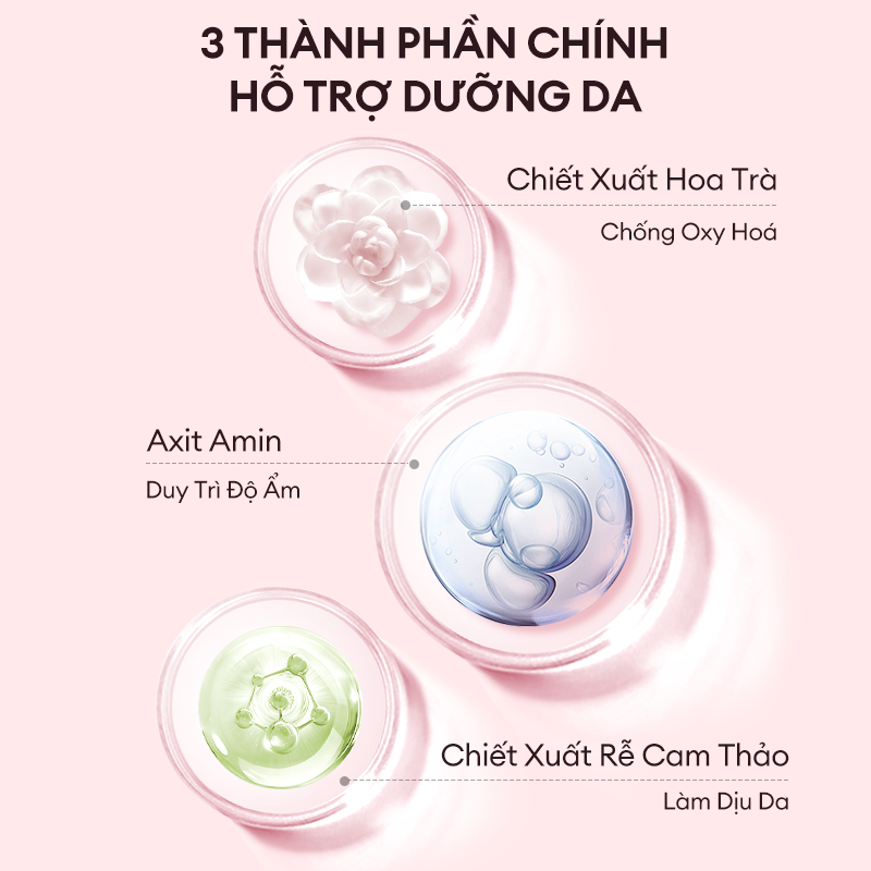 🍀 Chiết xuất từ hoa trà: giúp bảo vệ làn da khỏi các tác hại từ môi trường; đồng thời giúp chống oxy hoá cho làn da.