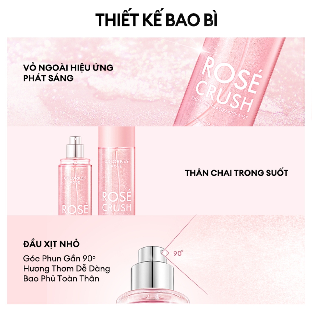 - Colorkey Rosé Rosé Crush Shimmer Fragrance Mist (màu hồng) - Hương ngọt ấm