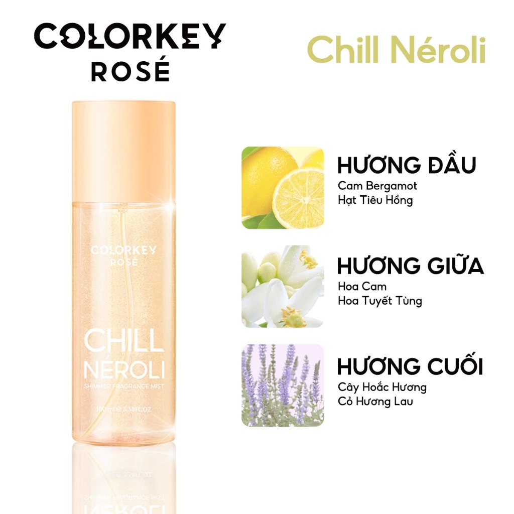 - Colorkey Rosé Chill Néroli Shimmer Fragrance Mist (Màu cam) - Hương thanh mát